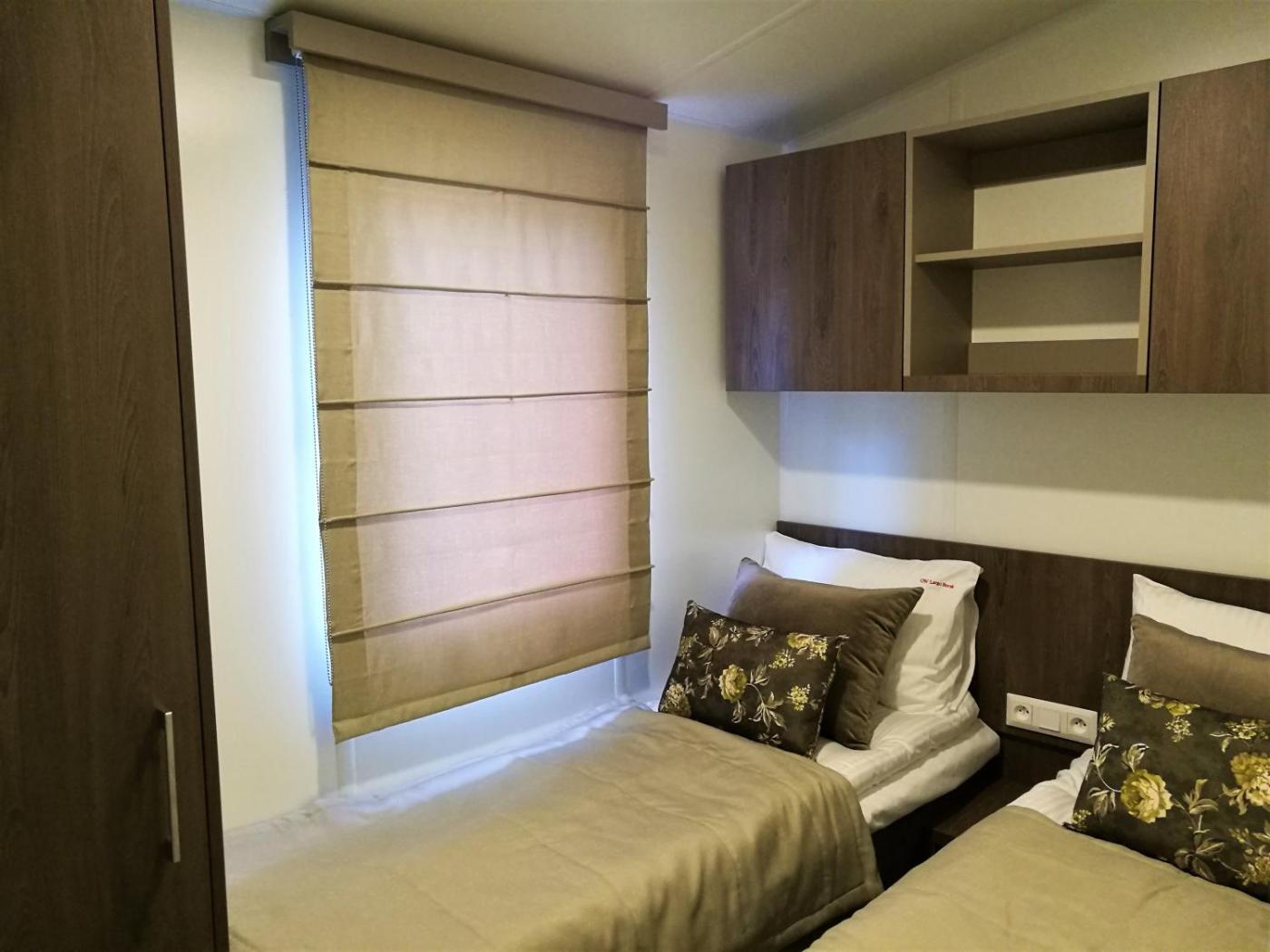 Domek mobilny z 2 sypialniami. Boasting a private entrance, this air-conditioned chalet comes with 1 living room, 2 separate bedrooms and 1 bathroom with a walk-in shower. Guests can make meals in the kitchen that features a stovetop, a refrigerator, kitchenware and an oven. Featuring a terrace with ancourtyard view, this chalet also features a tea and coffee maker and a flat-screen TV with cable channels. The unit has 4 beds. Domek - 6 osobowy. Powierzchnia pokoju ok.: 37 mkw. ;