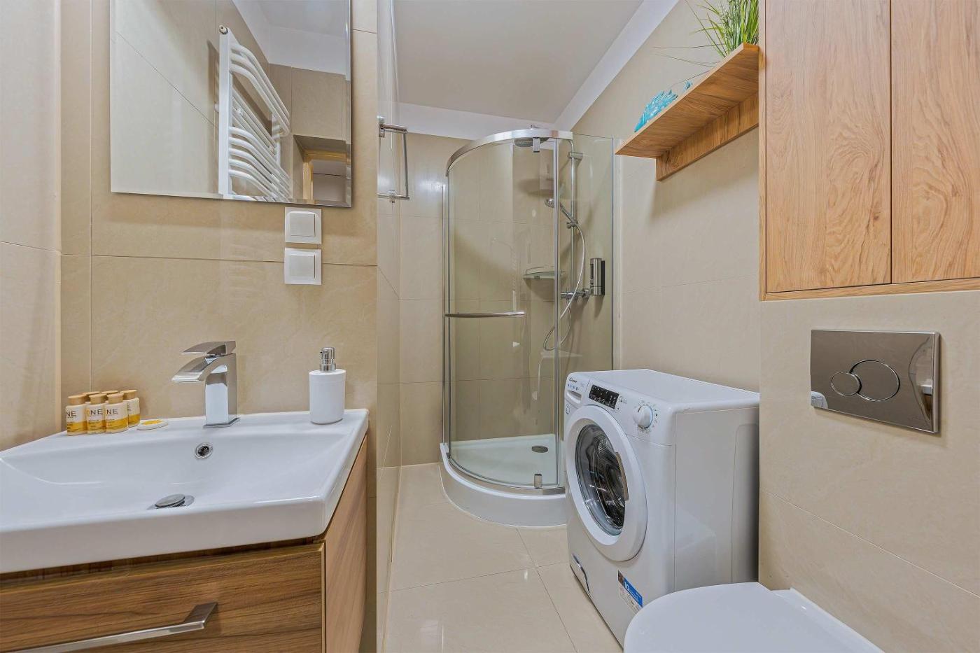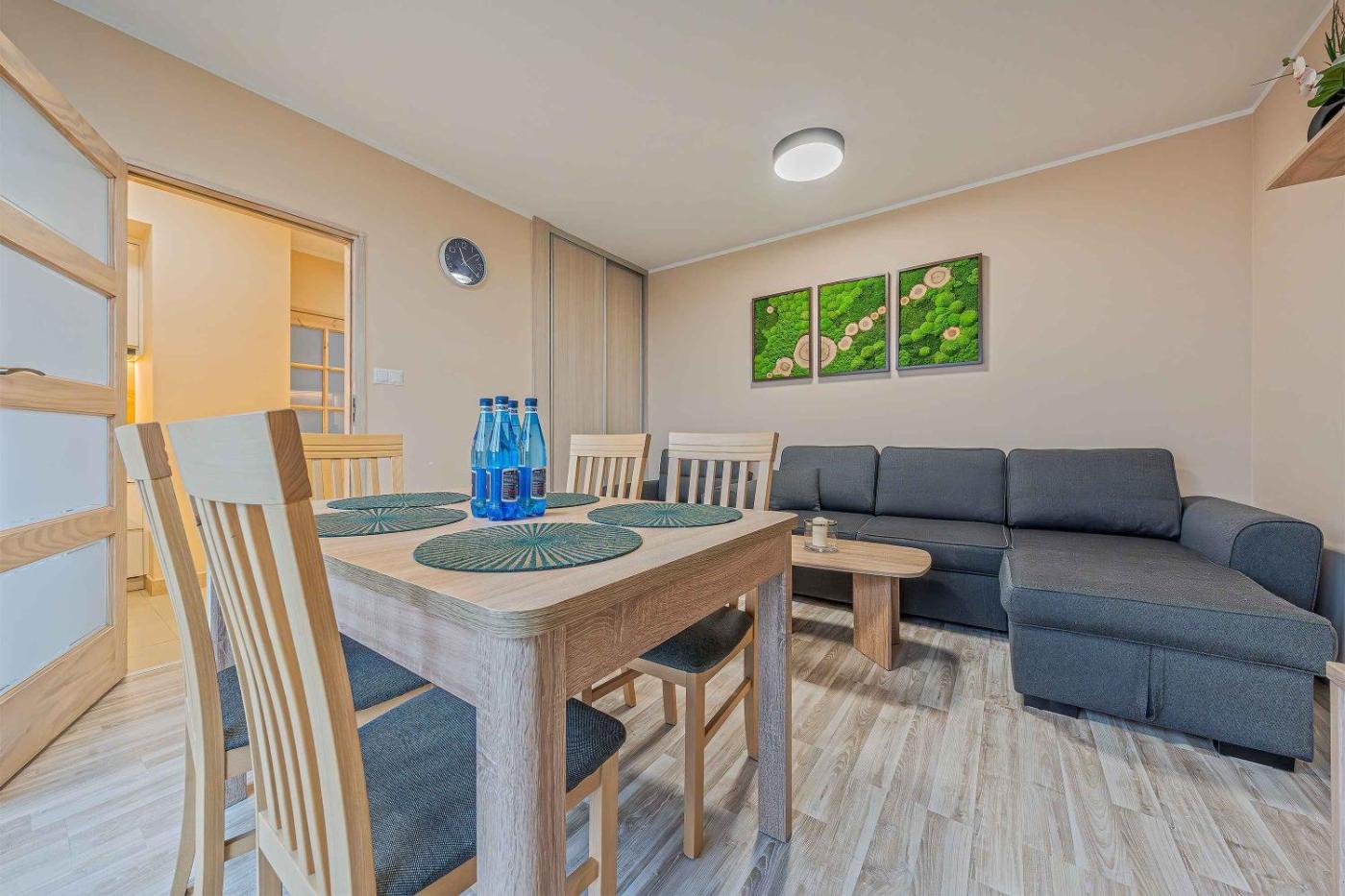 Apartament z 2 sypialniami. Jest to apartament z kuchnią, w której można przygotowywać posiłki i przechowywać żywność. Apartament jest ogrzewany i wyposażony w pralkę oraz telewizor z płaskim ekranem. W tej opcji zakwaterowania do dyspozycji gości są 3 łóżka. Apartament - 5 osobowy. Powierzchnia pokoju ok.: 38 mkw.