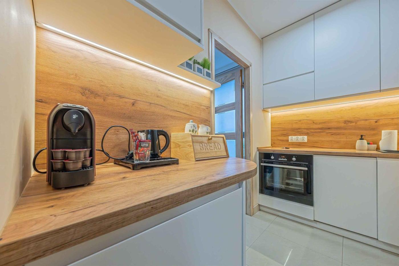 W apartamencie z 2 sypialniami zapewniono salon z telewizorem z płaskim ekranem, a także kuchnię z pełnym wyposażeniem.