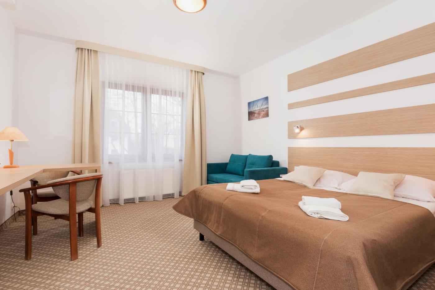 Apartament (4 osoby dorosłe). Jest to jasny apartament z aneksem kuchennym i łazienką. Goście mają do dyspozycji 2 pokoje oraz duży taras. Apartament - 4 osobowy. Powierzchnia pokoju ok.: 27 mkw.