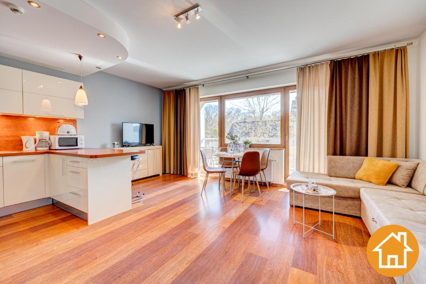 Apartament z 1 sypialnią. This apartment comes with 1 living room, 1 separate bedroom and 1 bathroom with a bath and a shower. Meals can be prepared in the well-fitted kitchenette, which features a stovetop, a refrigerator, a dishwasher and kitchenware. Boasting a balcony with garden views, this apartment also features a washing machine and a flat-screen TV. The unit has 2 beds. Apartament - 4 osobowy. Powierzchnia pokoju ok.: 44 mkw. ;