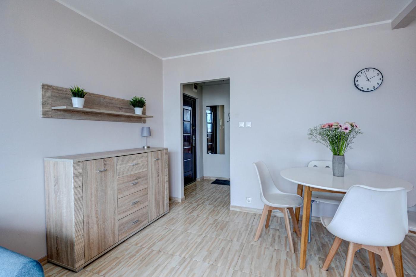 Apartament z 1 sypialnią. Meals can be prepared in the well-fitted kitchenette, which comes with a stovetop, a refrigerator, kitchenware and a microwave. The apartment provides a flat-screen TV with streaming services, a washing machine, a tea and coffee maker, a dining area as well as city views. The unit offers 2 beds. Apartament - 4 osobowy. Powierzchnia pokoju ok.: 36 mkw.