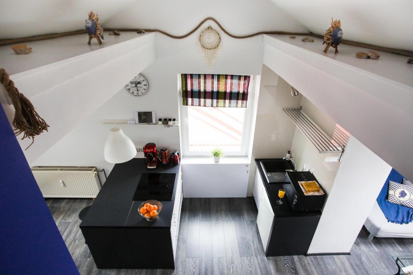 Apartament dwupoziomowy. Boasting a private entrance, this apartment comes with 1 living room, 1 separate bedroom and 1 bathroom with a bath and a hairdryer. Guests can make meals in the kitchen that features a stovetop, a refrigerator, kitchenware and a microwave. The apartment features a flat-screen TV with cable channels, a washing machine, a tea and coffee maker, a seating area as well as sea views. The unit has 5 beds. Apartament - 6 osobowy. Powierzchnia pokoju ok.: 41 mkw.