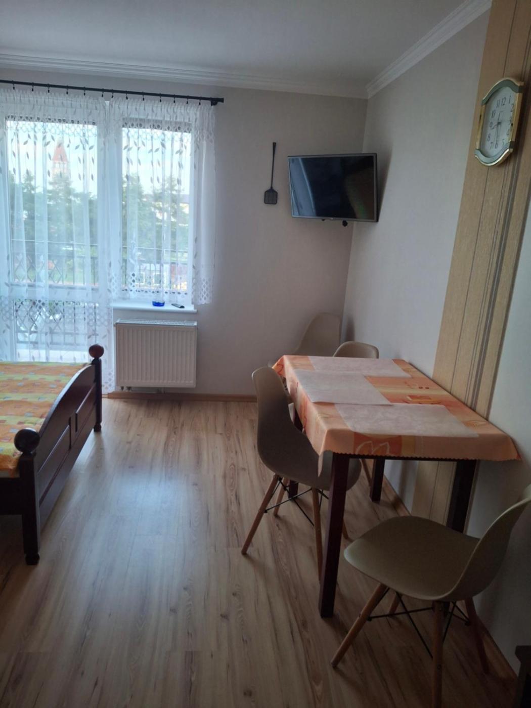 Pokój Dwuosobowy z balkonem. The double room offers a tea and coffee maker and a dining area, as well as a private bathroom boasting a walk-in shower. The double rooms kitchen, which features a refrigerator and kitchenware, is available for cooking and storing food. This double room has a wardrobe, parquet floors, a flat-screen TV and a balcony. The unit has 1 bed. Pokój Dwuosobowy - 2 osobowy. Powierzchnia pokoju ok.: 15 mkw. ;