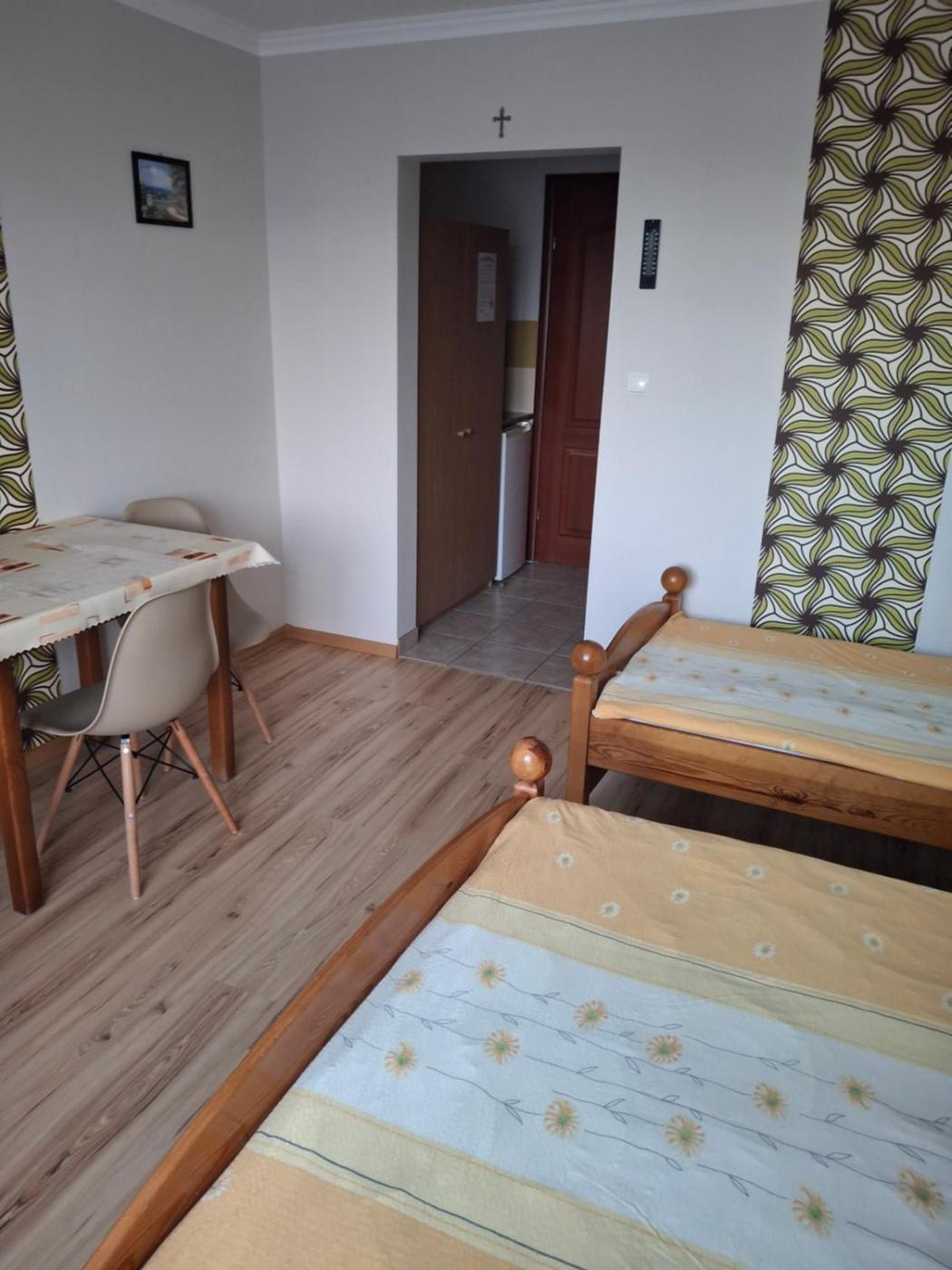Pokój Trzyosobowy z prywatną łazienką. The triple rooms kitchen, which features a refrigerator and kitchenware, is available for cooking and storing food. The triple room provides a tea and coffee maker and a dining area, as well as a private bathroom featuring a walk-in shower. The unit offers 2 beds. Pokój Trzyosobowy - 3 osobowy. Powierzchnia pokoju ok.: 20 mkw. ;